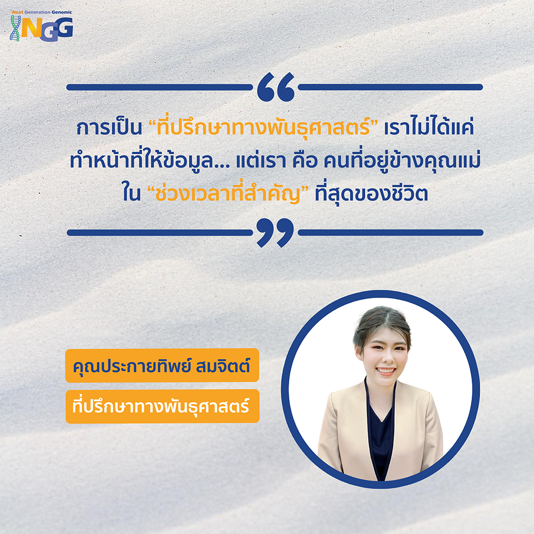 เราอยู่เพื่อรับฟัง และอยู่เพื่อทำให้ข้อมูลทางพันธุกรรมกลายเป็นเรื่องที่เข้าใจได้ง่าย ไม่ใช่แค่เรื่องของวิทยาศาสตร์ หรือชื่อโรค แต่คือการส่งต่อความเข้าใจ ความหวัง และความพร้อมในการดูแลลูกน้อยให้ดีที่สุด
